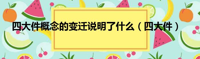大家好,今天小六子来为大家解答以下的问题,关于四大件概念的变迁说明了什么,四大件这个很多人还不知道,现在让我们一起来看看吧!