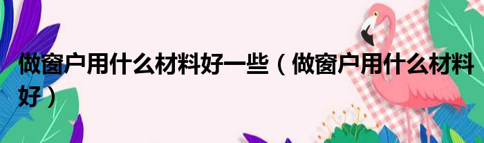 做窗户用什么材料好一些(做窗户用什么材料好)