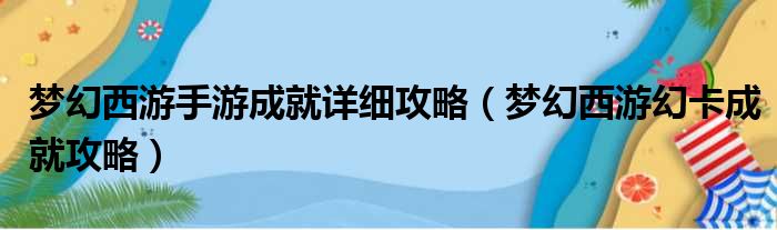 梦幻西游手游成就详细攻略(梦幻西游幻卡成就攻略)
