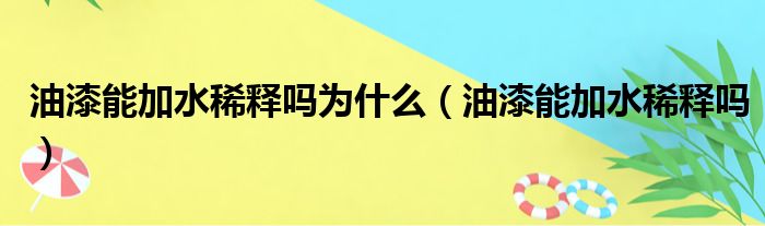 油漆能加水稀释吗为什么(油漆能加水稀释吗)