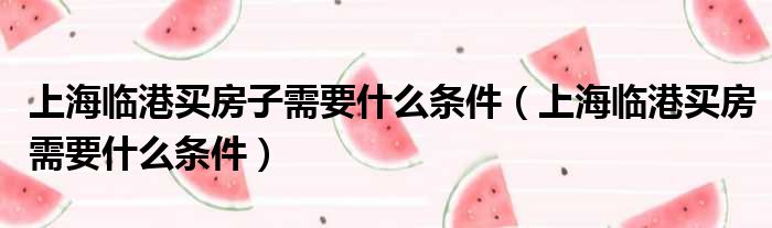 上海临港买房子需要什么条件(上海临港买房需要什么条件)