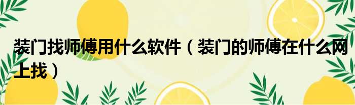 装门找师傅用什么软件(装门的师傅在什么网上找)