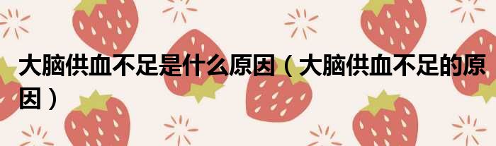 大脑供血不足是什么原因(大脑供血不足的原因)