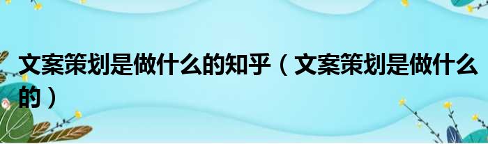 文案策划是做什么的知乎(文案策划是做什么的)