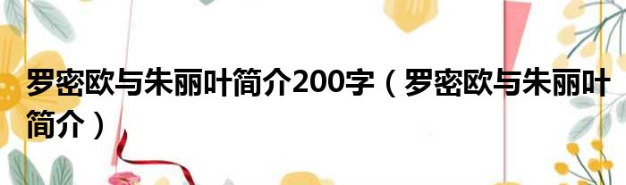 罗密欧与朱丽叶简介200字(罗密欧与朱丽叶简介)