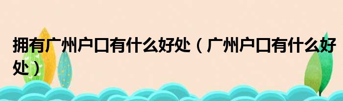 大家好,今天小六子来为大家解答以下的问题,关于拥有广州户口有什么好处,广州户口有什么好处这个很多人还不知道,现在让我们一起来看看吧!