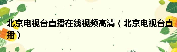 导读 大家好,今天小六子来为大家解答以下的问题,关于北京电视台直播在线视频高清,北京电视台直播这个很多人还不知道,现在让我们一起来看看吧