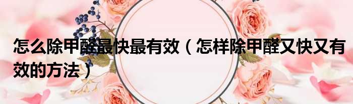 怎么除甲醛最快最有效(怎样除甲醛又快又有效的方法)