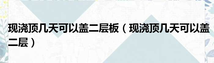 现浇顶几天可以盖二层板(现浇顶几天可以盖二层)