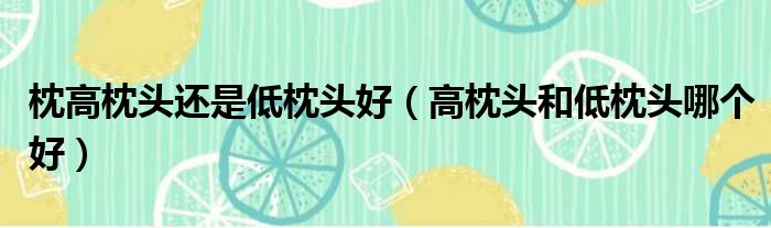 枕高枕头还是低枕头好(高枕头和低枕头哪个好)