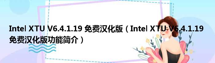 Intel XTU V6.4.1.19 免费汉化版(Intel XTU V6.4.1.19 免费汉化版功能简介)