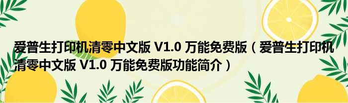 爱普生打印机清零中文版 V1.0 万能免费版(爱普生打印机清零中文版 V1.0 万能免费版功能简介)