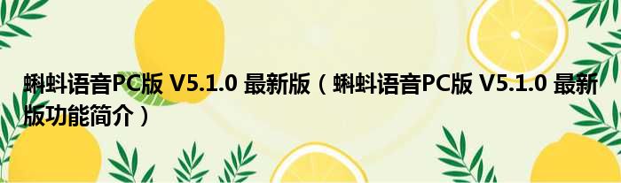 导读 大家好,关于蝌蚪语音PC版 V5 1 0 最新版,蝌蚪语音PC版 V5 1 0 最新版功能简介这个很多人还不知道,小勒来为大家解答以上的问题,现在让