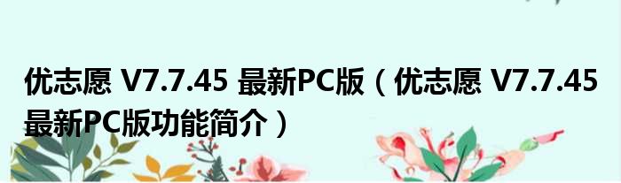 优志愿 V7.7.45 最新PC版(优志愿 V7.7.45 最新PC版功能简介)