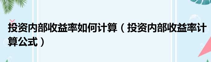 导读 大家好,今天小六子来为大家解答以下的问题,关于投资内部收益率如何计算,投资内部收益率计算公式这个很多人还不知道,现在让我们一起来看