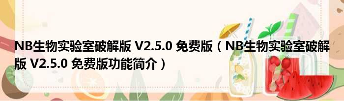 导读 大家好,关于NB生物实验室破解版 V2 5 0 免费版,NB生物实验室破解版 V2 5 0 免费版功能简介这个很多人还不知道,小勒来为大家解答以上的