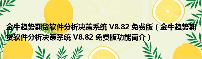 金牛趋势期货软件分析决策系统 V8.82 免费版(金牛趋势期货软件分析决策系统 V8.82 免费版功能简介)