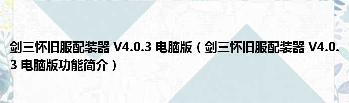 剑三怀旧服配装器 V4.0.3 电脑版(剑三怀旧服配装器 V4.0.3 电脑版功能简介)
