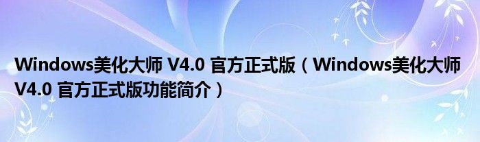 Windows美化大师 V4.0 官方正式版(Windows美化大师 V4.0 官方正式版功能简介)