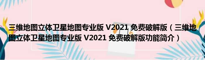 三维地图立体卫星地图专业版 V2021 免费破解版(三维地图立体卫星地图专业版 V2021 免费破解版功能简介)