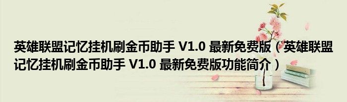 英雄联盟记忆挂机刷金币助手 V1.0 最新免费版(英雄联盟记忆挂机刷金币助手 V1.0 最新免费版功能简介)