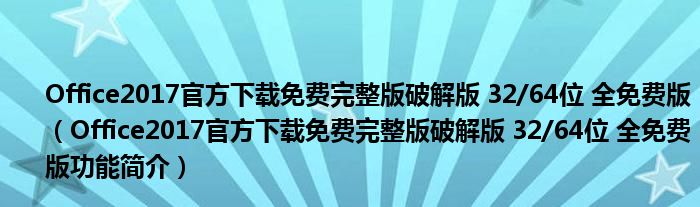 Office2017官方下载免费完整版破解版 32/64位 全免费版(Office2017官方下载免费完整版破解版 32/64位 全免费版功能简介)
