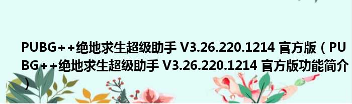 PUBG++绝地求生超级助手 V3.26.220.1214 官方版(PUBG++绝地求生超级助手 V3.26.220.1214 官方版功能简介)