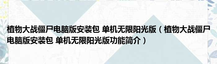 植物大战僵尸电脑版安装包 单机无限阳光版(植物大战僵尸电脑版安装包 单机无限阳光版功能简介)