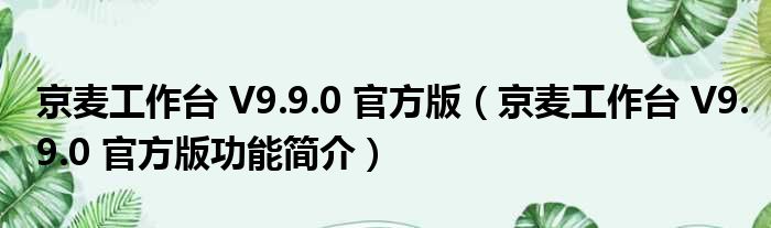 京麦工作台 V9.9.0 官方版(京麦工作台 V9.9.0 官方版功能简介)