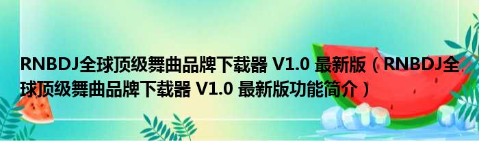 RNBDJ全球顶级舞曲品牌下载器 V1.0 最新版(RNBDJ全球顶级舞曲品牌下载器 V1.0 最新版功能简介)