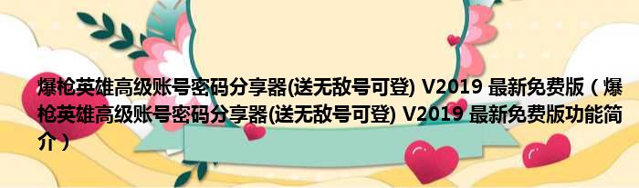 爆枪英雄高级账号密码分享器(送无敌号可登) V2019 最新免费版(爆枪英雄高级账号密码分享器(送无敌号可登) V2019 最新免费版功能简介)