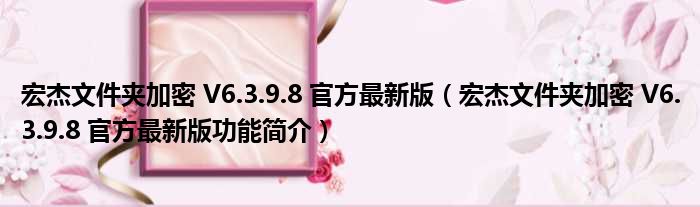 宏杰文件夹加密 V6.3.9.8 官方最新版(宏杰文件夹加密 V6.3.9.8 官方最新版功能简介)