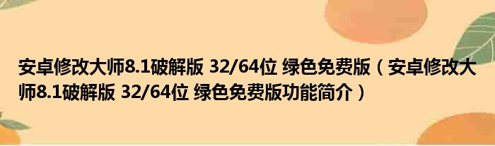 安卓修改大师8.1破解版 32/64位 绿色免费版(安卓修改大师8.1破解版 32/64位 绿色免费版功能简介)