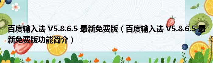 百度输入法 V5.8.6.5 最新免费版(百度输入法 V5.8.6.5 最新免费版功能简介)