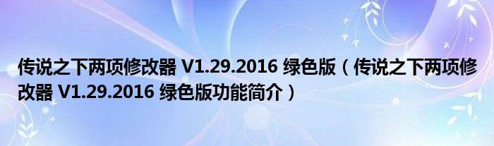 导读 大家好,关于传说之下两项修改器 V1 29 2016 绿色版,传说之下两项修改器 V1 29 2016 绿色版功能简介这个很多人还不知道,小勒来为大家解