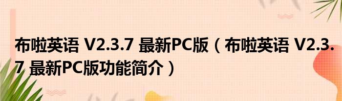 导读 大家好,关于布啦英语 V2 3 7 最新PC版,布啦英语 V2 3 7 最新PC版功能简介这个很多人还不知道,小勒来为大家解答以上的问题,现在让我们