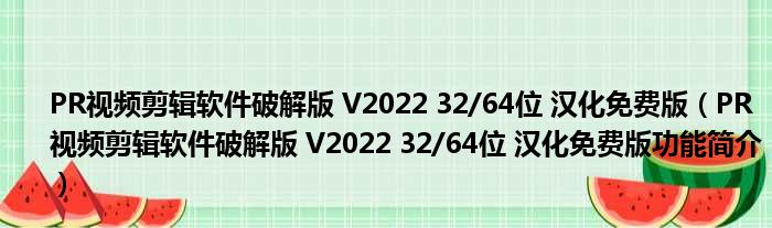 PR视频剪辑软件破解版 V2022 32/64位 汉化免费版(PR视频剪辑软件破解版 V2022 32/64位 汉化免费版功能简介)