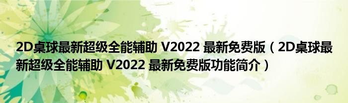 导读 大家好,关于2D桌球最新超级全能辅助 V2022 最新免费版,2D桌球最新超级全能辅助 V2022 最新免费版功能简介这个很多人还不知道,小勒来为