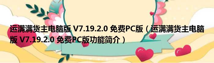 导读 大家好,关于运满满货主电脑版 V7 19 2 0 免费PC版,运满满货主电脑版 V7 19 2 0 免费PC版功能简介这个很多人还不知道,小勒来为大家解答