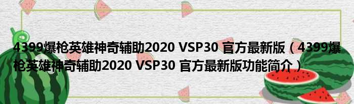 4399爆枪英雄神奇辅助2020 VSP30 官方最新版(4399爆枪英雄神奇辅助2020 VSP30 官方最新版功能简介)