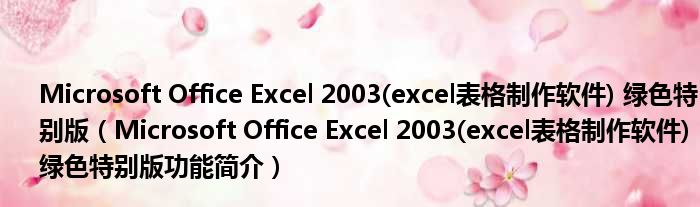 Microsoft Office Excel 2003(excel表格制作软件) 绿色特别版(Microsoft Office Excel 2003(excel表格制作软件) 绿色特别版功能简介)