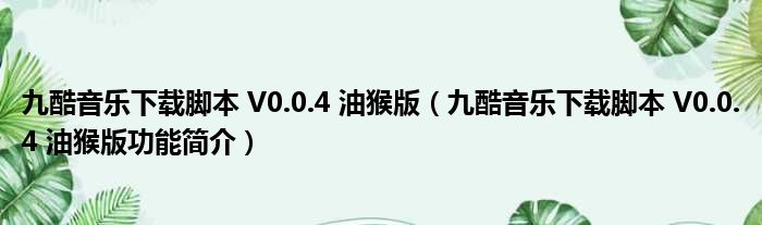 导读 大家好,关于九酷音乐下载脚本 V0 0 4 油猴版,九酷音乐下载脚本 V0 0 4 油猴版功能简介这个很多人还不知道,小勒来为大家解答以上的问题