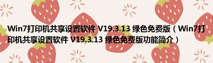 Win7打印机共享设置软件 V19.3.13 绿色免费版(Win7打印机共享设置软件 V19.3.13 绿色免费版功能简介)