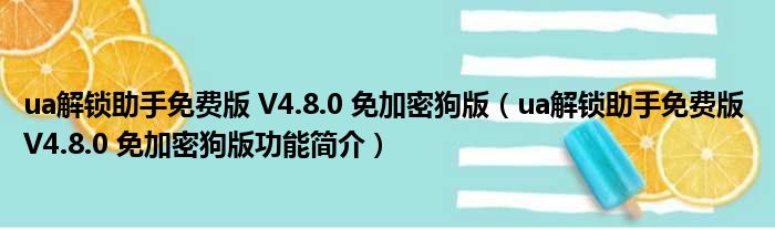 ua解锁助手免费版 V4.8.0 免加密狗版(ua解锁助手免费版 V4.8.0 免加密狗版功能简介)