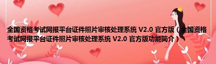 全国资格考试网报平台证件照片审核处理系统 V2.0 官方版(全国资格考试网报平台证件照片审核处理系统 V2.0 官方版功能简介)