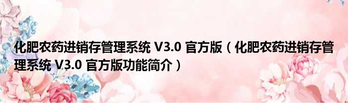 化肥农药进销存管理系统 V3.0 官方版(化肥农药进销存管理系统 V3.0 官方版功能简介)