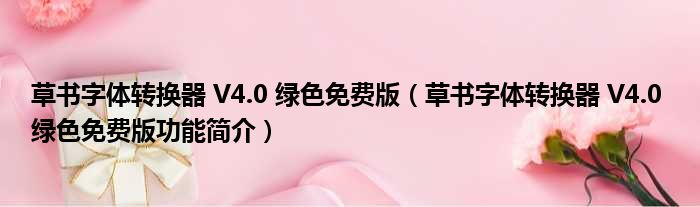 导读 大家好,关于草书字体转换器 V4 0 绿色免费版,草书字体转换器 V4 0 绿色免费版功能简介这个很多人还不知道,小勒来为大家解答以上的问题