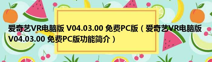 爱奇艺VR电脑版 V04.03.00 免费PC版(爱奇艺VR电脑版 V04.03.00 免费PC版功能简介)