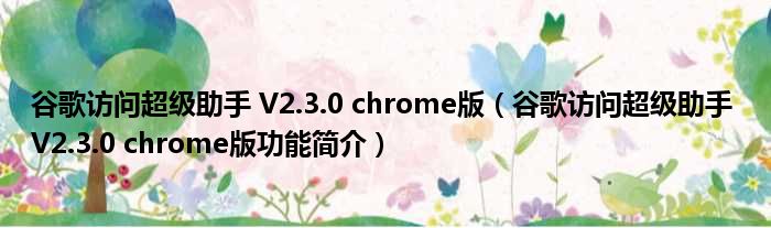 谷歌访问超级助手 V2.3.0 chrome版(谷歌访问超级助手 V2.3.0 chrome版功能简介)