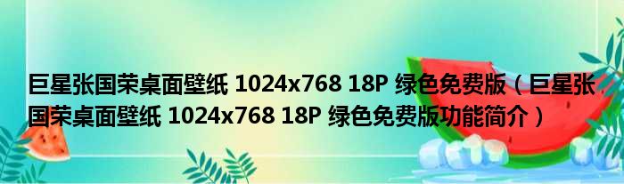 导读 大家好,关于巨星张国荣桌面壁纸 1024x768 18P 绿色免费版,巨星张国荣桌面壁纸 1024x768 18P 绿色免费版功能简介这个很多人还不知道,